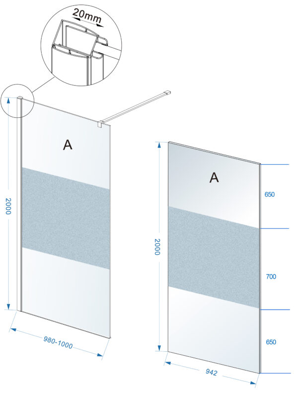 Deze Partly inloopdouche van Sanithuis van 100 cm breed is gemaakt van 10 mm dik gehard veiligheidsglas en met NANO-coating afgewerkt. Door het muurprofiel, en de verstelbaarheid daarvan, is de inloopdouche eenvoudig te plaatsen. Ook wanneer de vloer en wand niet exact haaks op elkaar staan. De meegeleverde stabilisatiestang zorgt ervoor dat de inloopdouche na montage zeer stevig staat. De gezandstraalde/gematteerde band in het midden van het glas zorgt voor wat meer privacy ten opzichte van de Comfort inloopdouches.