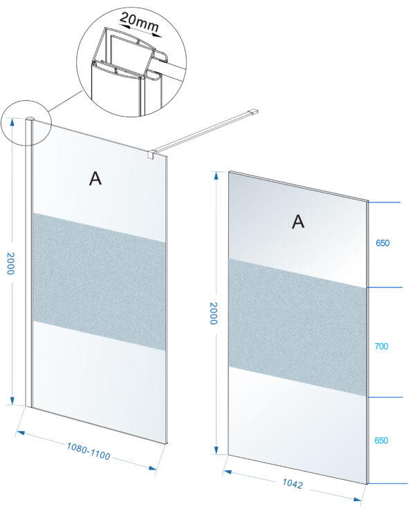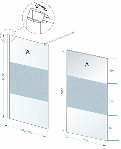 Deze Partly inloopdouche van Sanithuis van 110 cm breed is gemaakt van 10 mm dik gehard veiligheidsglas en met NANO-coating afgewerkt. Door het muurprofiel, en de verstelbaarheid daarvan, is de inloopdouche eenvoudig te plaatsen. Ook wanneer de vloer en wand niet exact haaks op elkaar staan. De meegeleverde stabilisatiestang zorgt ervoor dat de inloopdouche na montage zeer stevig staat. De gezandstraalde/gematteerde band in het midden van het glas zorgt voor wat meer privacy ten opzichte van de Comfort inloopdouches.