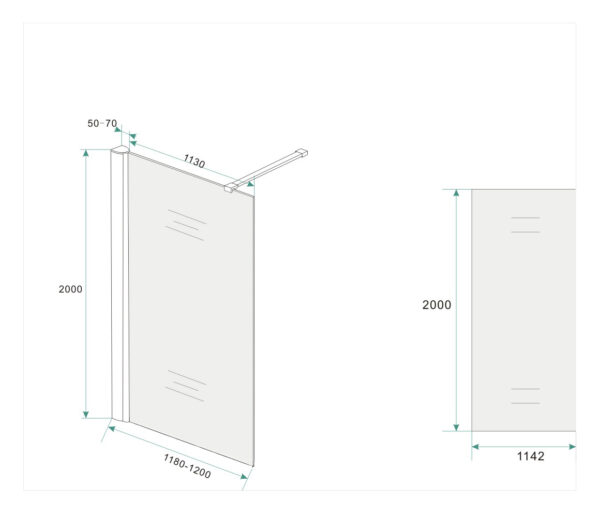 Zeer fraaie Inloopdouche 120cm breed 200cm hoog inclusief chroom zijprofiel en chroom stabilisatiestang van 120cm