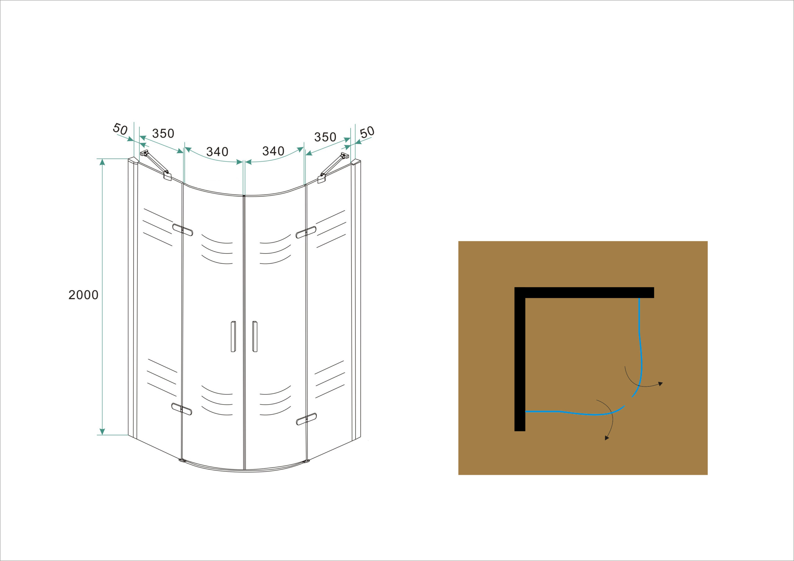 Wiesbaden Double cabine kwartrond met 2 draaideuren 900 x 900 x 2000 x 8 mm nano helder glas/chroom
