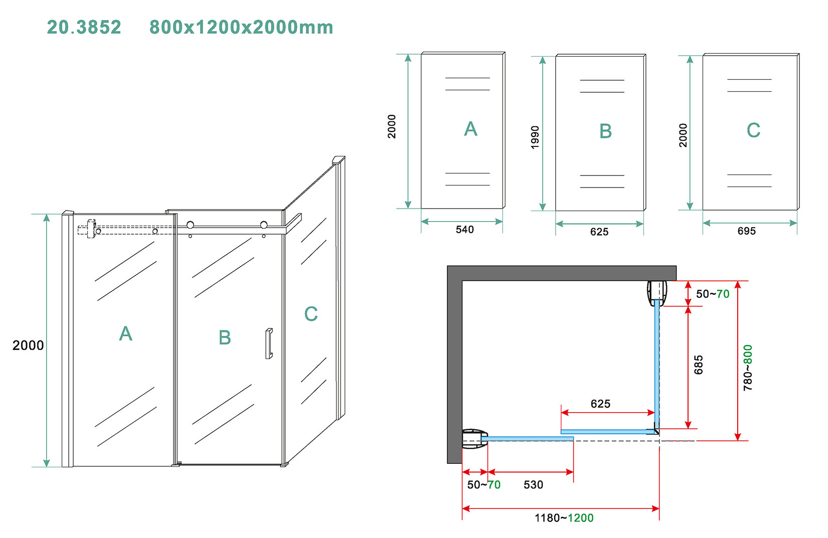 Wiesbaden Pared cabine met 1 schuifdeur 1200 x 800 x 2000 x 8 mm nano helder glas/chroom