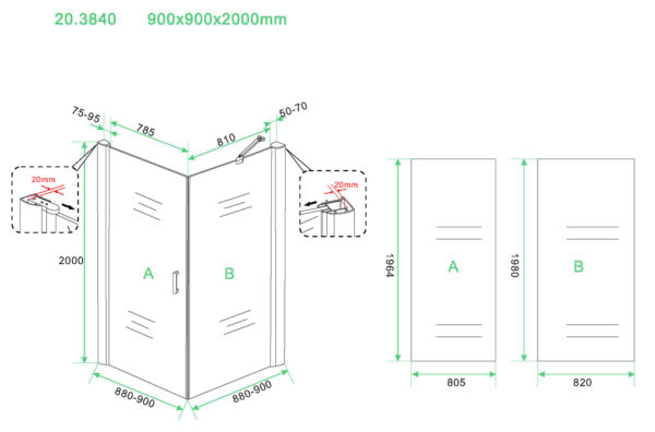 200cm hoog inclusief 2 chroom wand profielen welke 20mm aan beide zijden