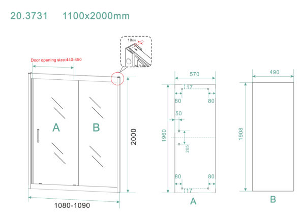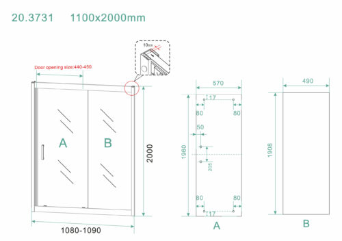 Skyline schuifbare nisdeur 1100×2000 mat-zwart 8mm NANO