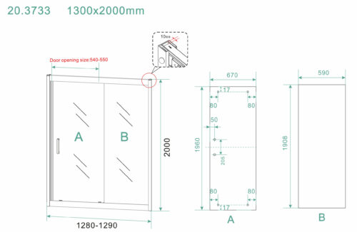 Skyline schuifbare nisdeur 1300×2000 mat-zwart 8mm NANO