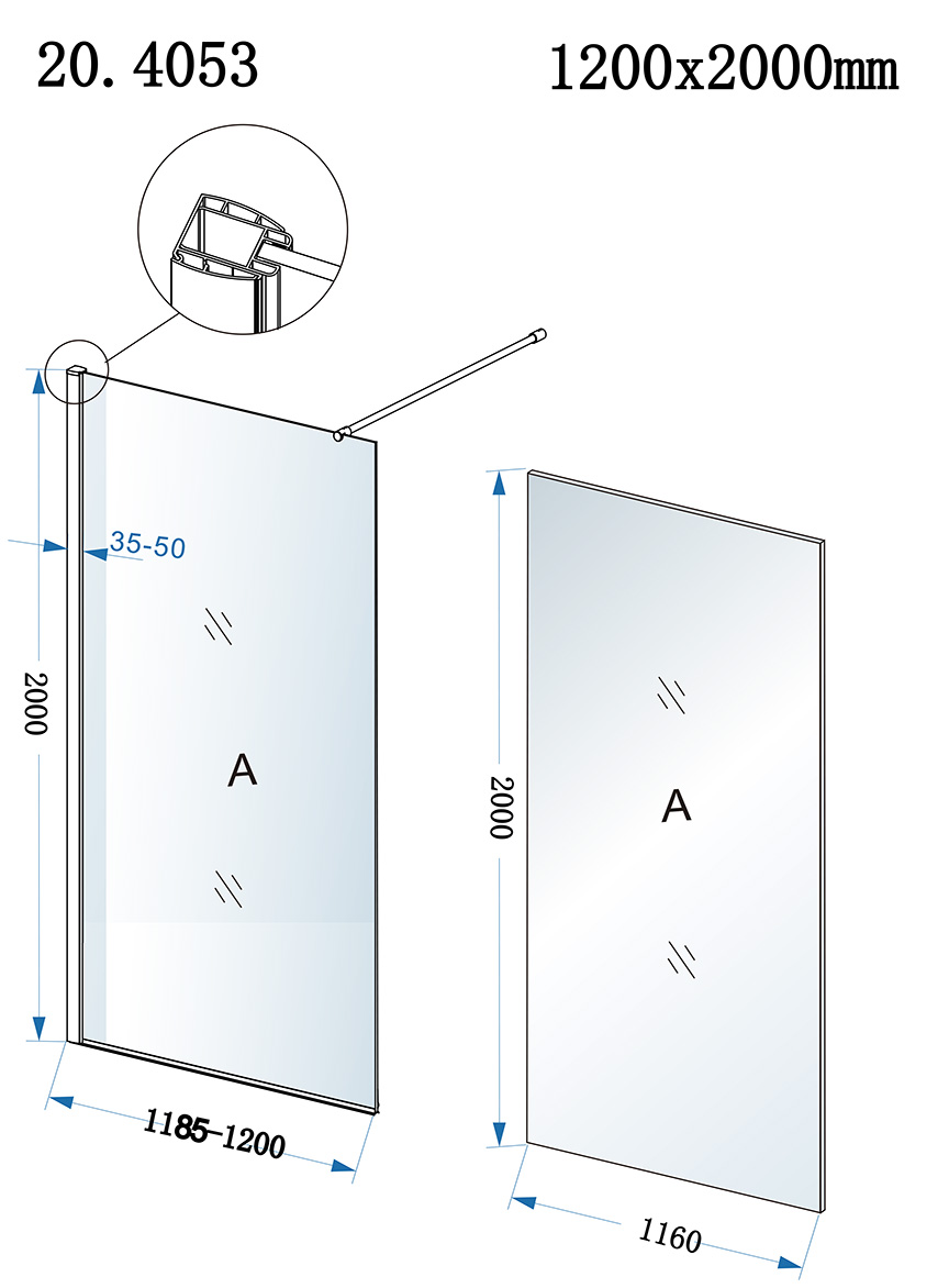 Xellanz Eco inloopdouche 1200 x 2000 x 8 mm nano helder glas/chroom